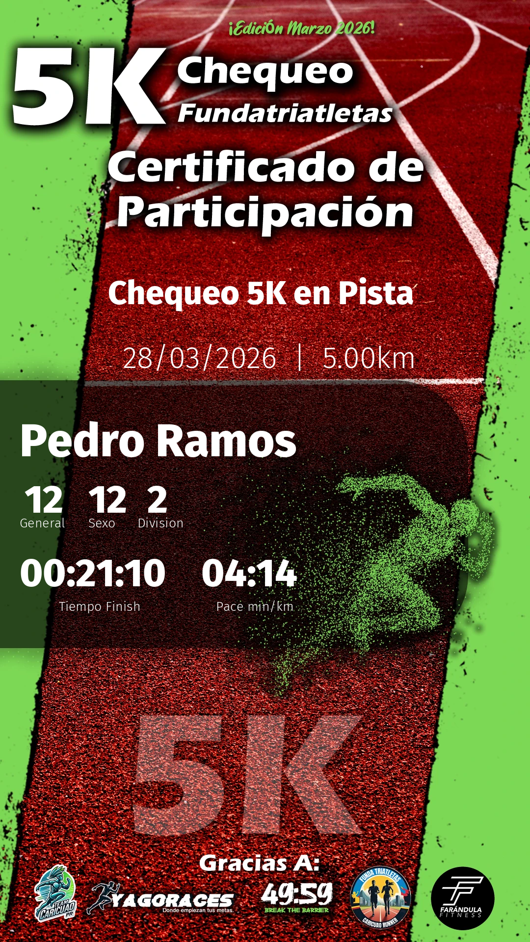 Tu esfuerzo, dedicación y espíritu son lo que hace cada evento único y memorable. Nos llena de orgullo contar con atletas como tú, que inspiran con cada paso. Esperamos que hayas disfrutado tanto como nosotros organizando este encuentro.