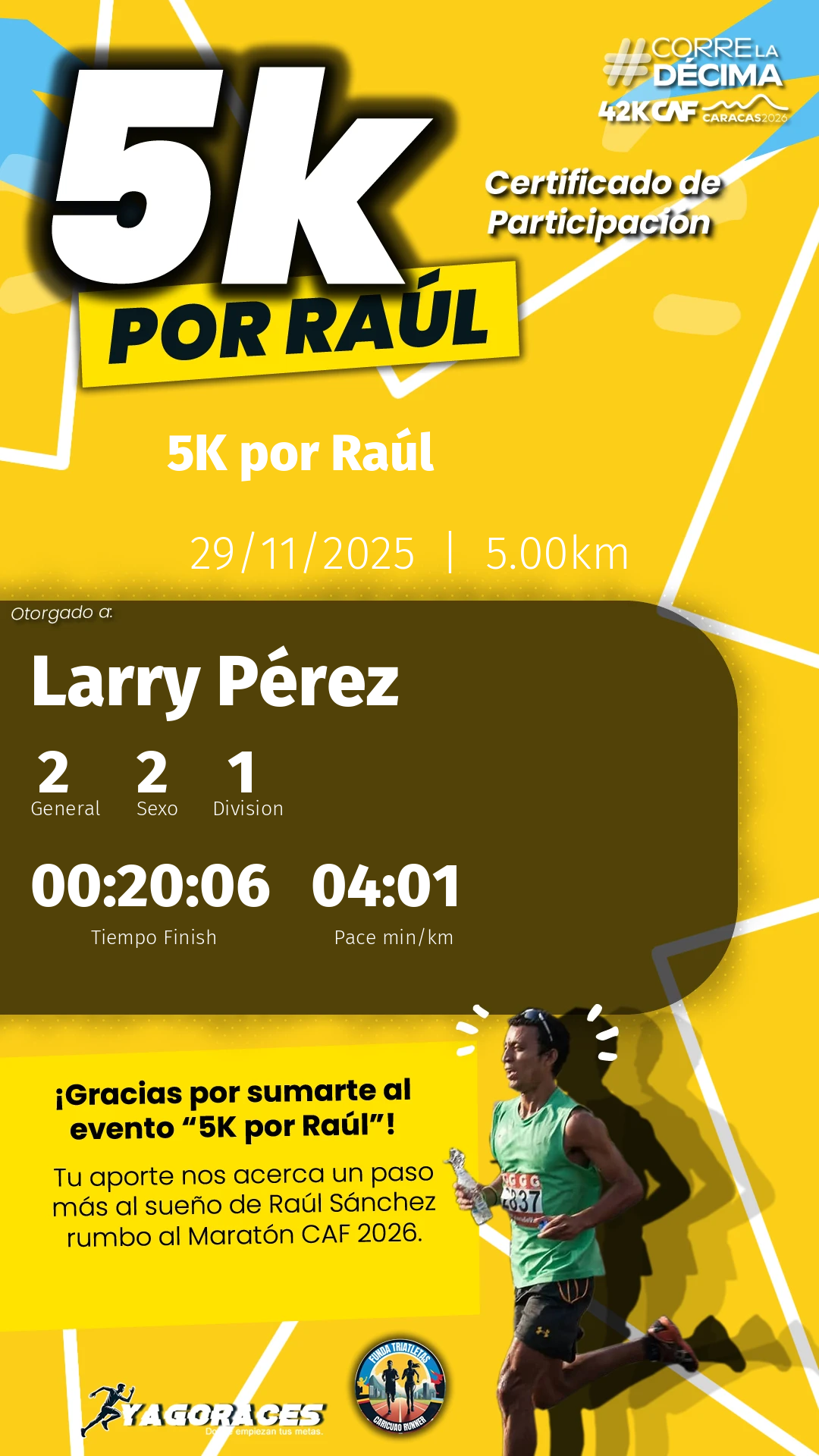 Tu esfuerzo, dedicación y espíritu son lo que hace cada evento único y memorable. Nos llena de orgullo contar con atletas como tú, que inspiran con cada paso. Esperamos que hayas disfrutado tanto como nosotros organizando este encuentro.