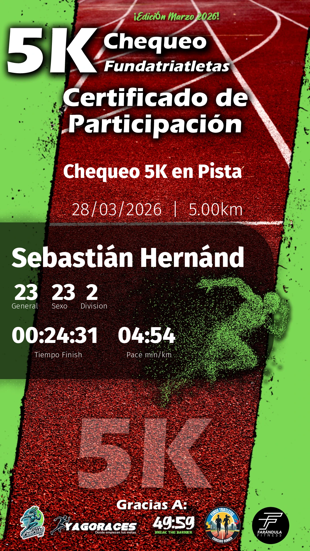 Tu esfuerzo, dedicación y espíritu son lo que hace cada evento único y memorable. Nos llena de orgullo contar con atletas como tú, que inspiran con cada paso. Esperamos que hayas disfrutado tanto como nosotros organizando este encuentro.