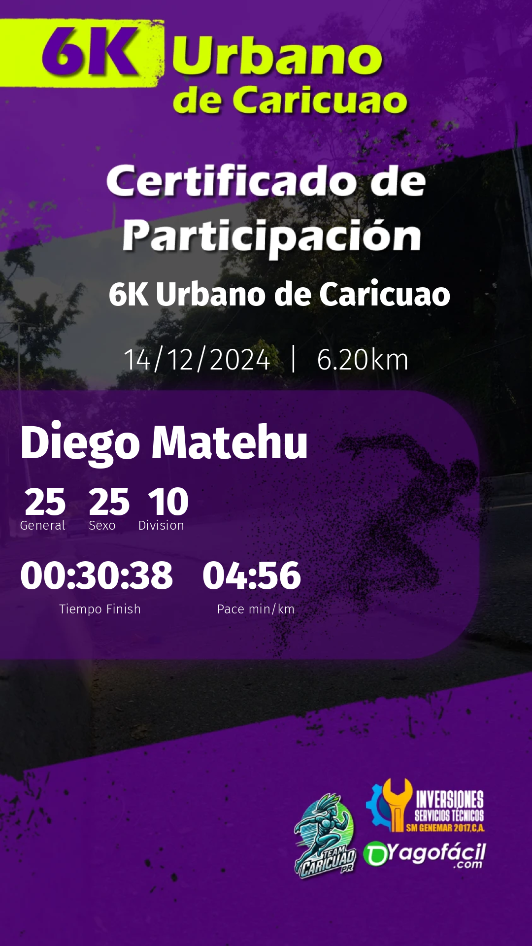 Tu esfuerzo, dedicación y espíritu son lo que hace cada evento único y memorable. Nos llena de orgullo contar con atletas como tú, que inspiran con cada paso. Esperamos que hayas disfrutado tanto como nosotros organizando este encuentro.