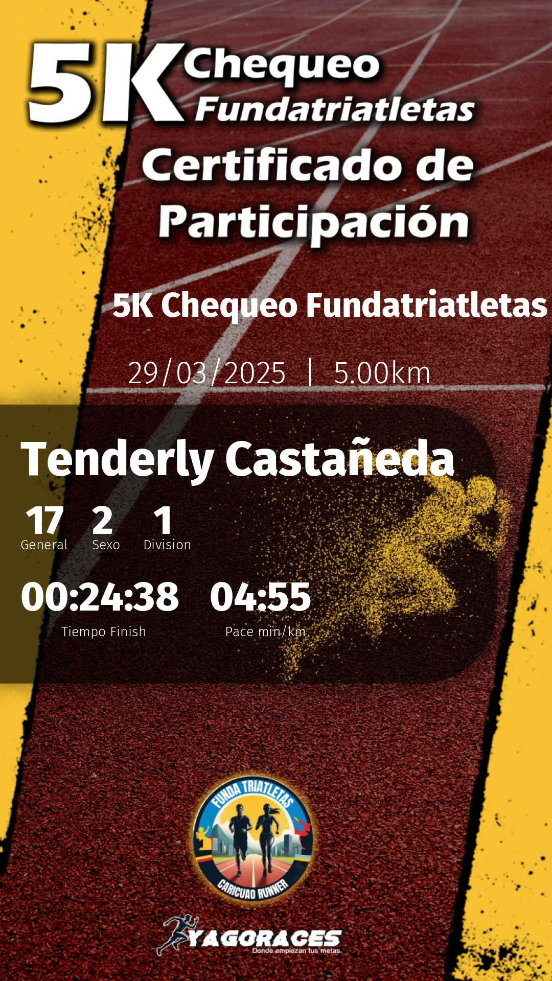 Tu esfuerzo, dedicación y espíritu son lo que hace cada evento único y memorable. Nos llena de orgullo contar con atletas como tú, que inspiran con cada paso. Esperamos que hayas disfrutado tanto como nosotros organizando este encuentro.
