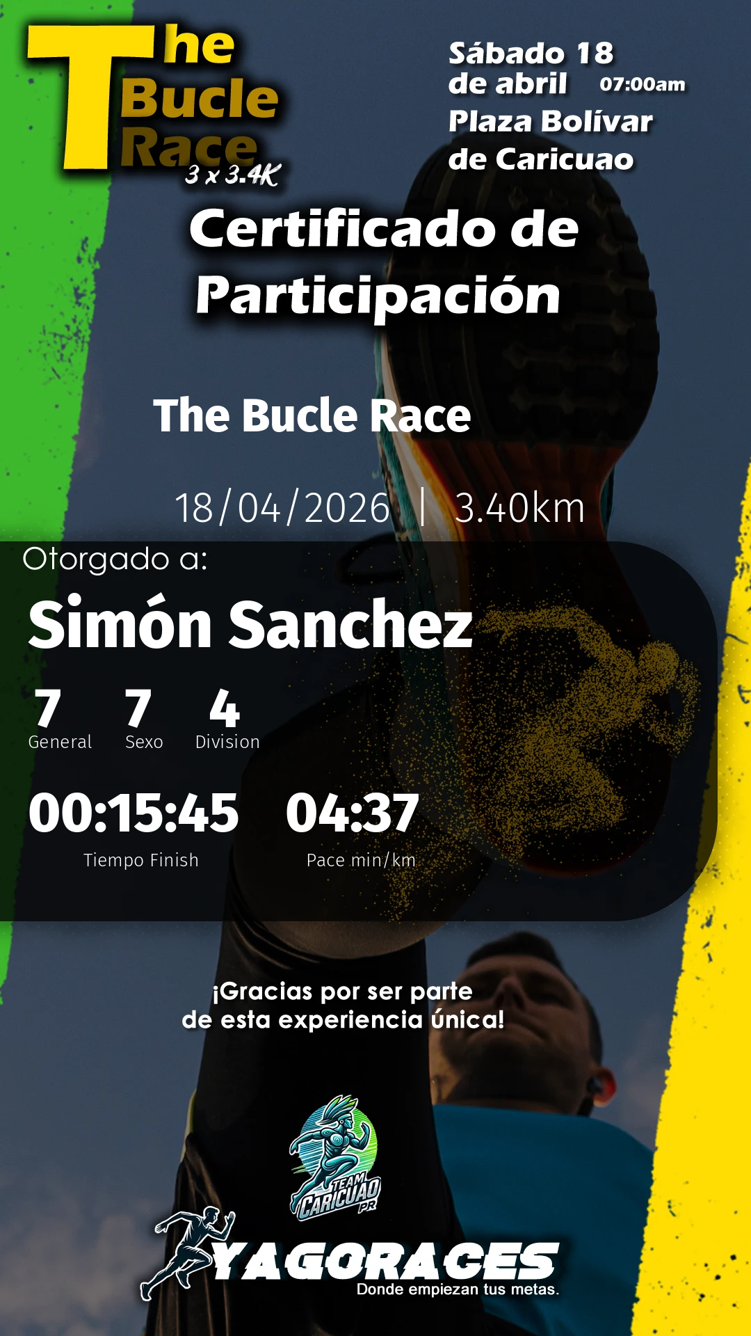 Simón Bib 0174:37 min/km 00:15:45 -