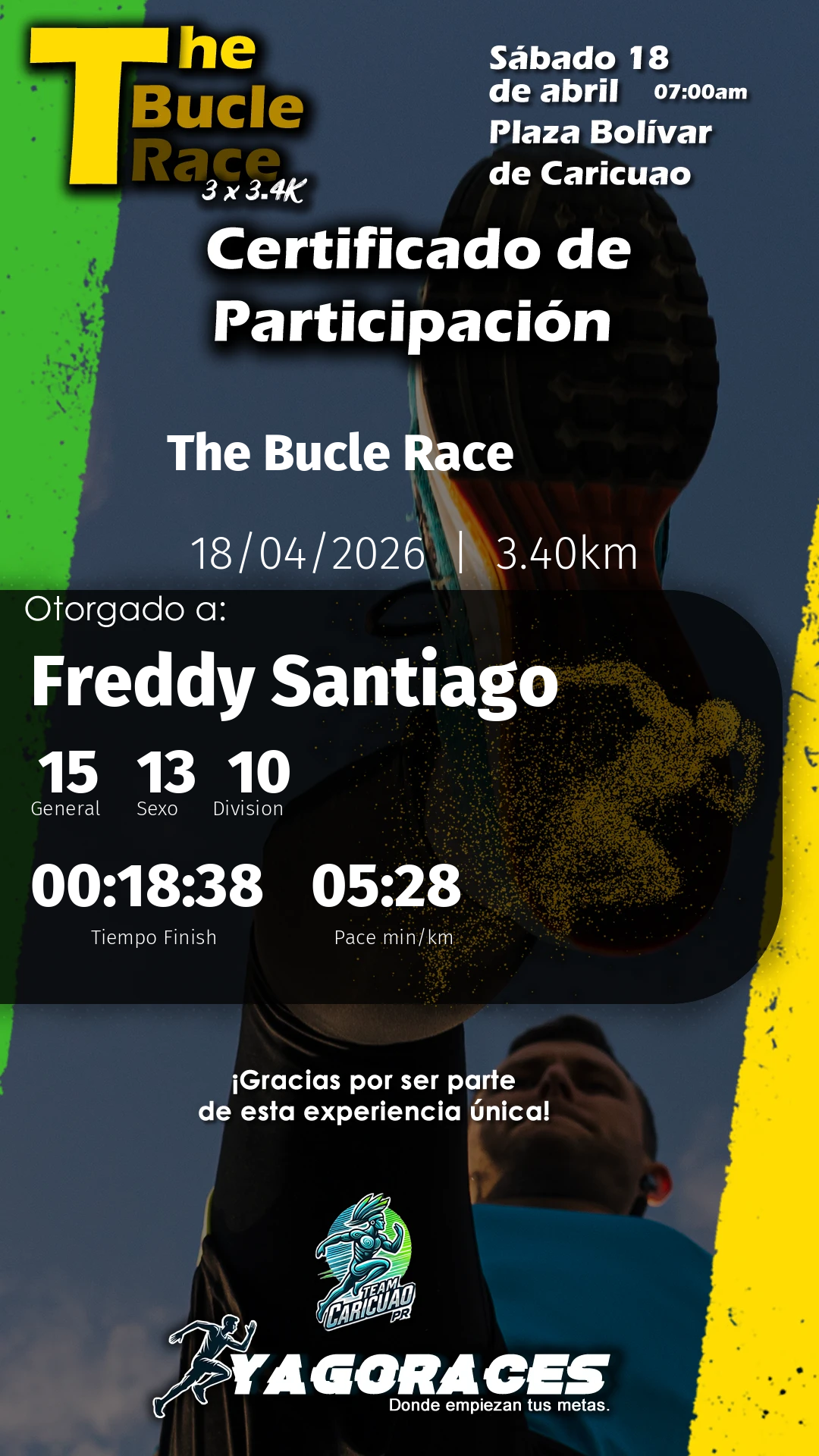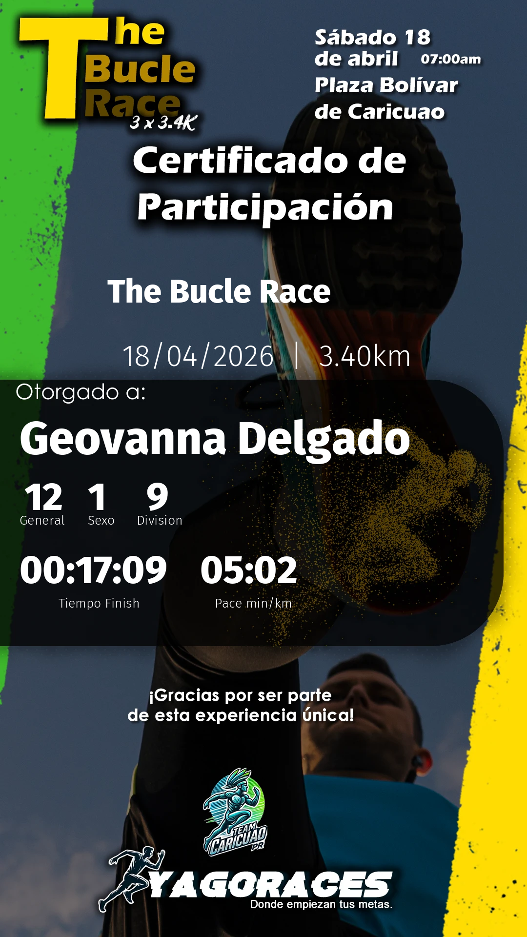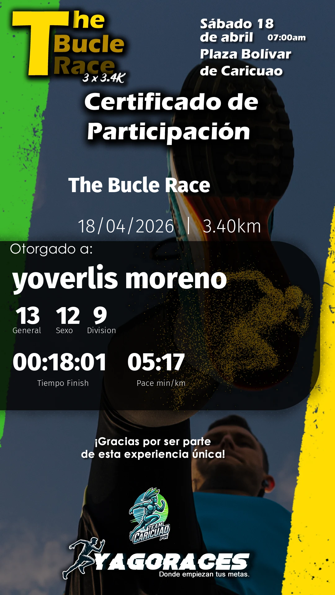 yoverlis Bib 0165:17 min/km 00:18:01 -
